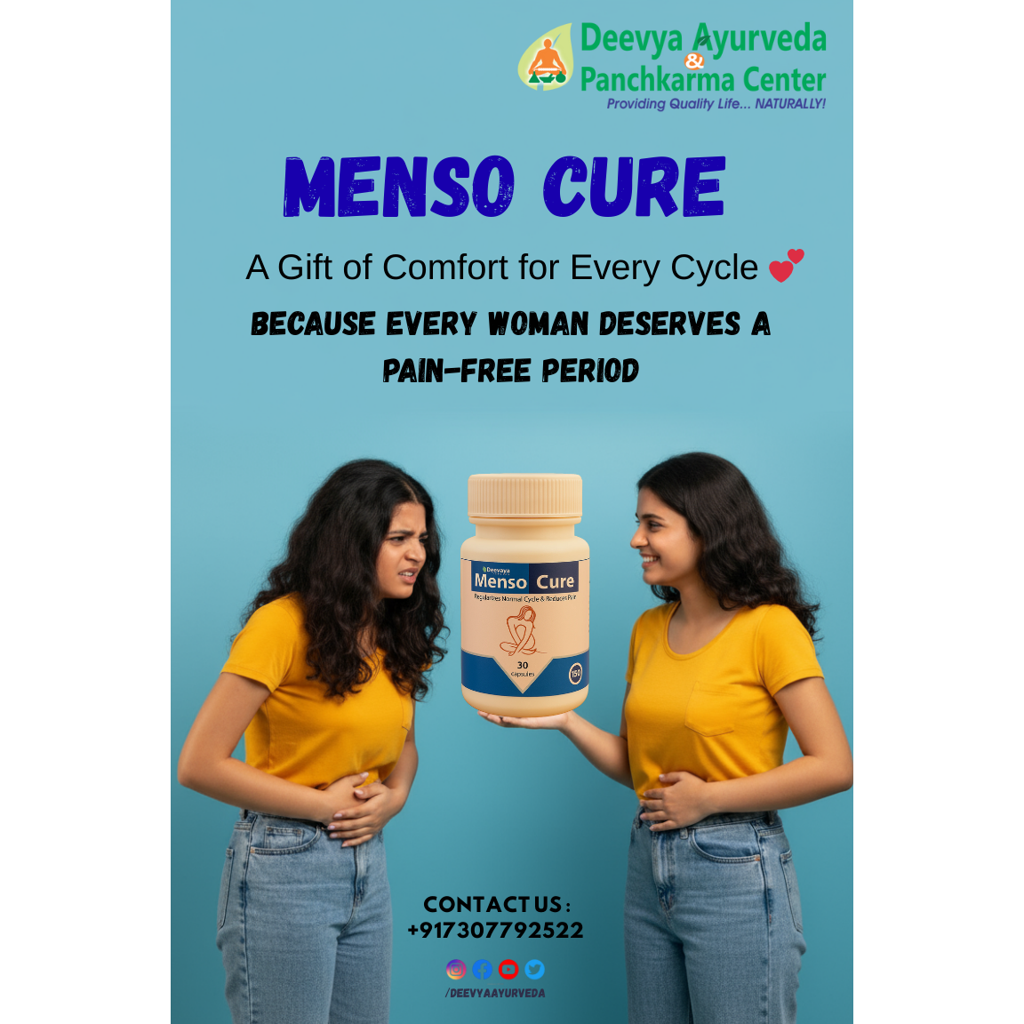 Menso Cure, Ayurvedic medicine for irregular periods, menstrual pain relief, Deevya Ayurveda, women’s health tonic, herbal remedy for PCOS, Ayurvedic menstrual care, hormone balance naturally, period pain treatment, best Ayurvedic product for women.